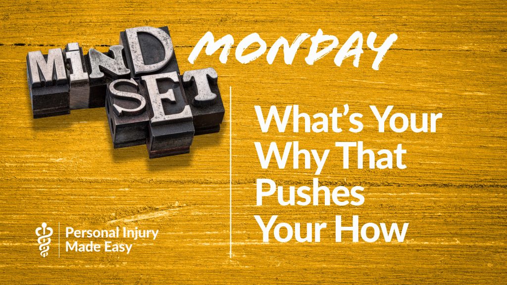 This week’s 2-Minute Monday Personal Injury Healthcare Mindset is about what matters. What’s Your Why that Pushes Your How? I’ve always done better as a coach tying into people’s why so they can then understand the need for the “how”. If not, the how doesn’t get done or gets done at a low level. So […]