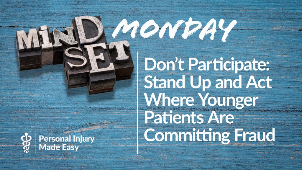 This 2-Minute Monday Personal Injury Mindset for Healthcare Providers, is about patient fraud and how to approach it. Don’t Participate: Stand Up and Act Where Younger Patients Are Committing Fraud A disturbing study at the University of Georgia by the Coalition Against Insurance Fraud found that 2 out of 5 adults under 34 years of […]